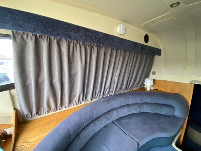 A full canopy is fitted giving a large covered area on the upper helm if required. All the sections zip out and and the frame can be lowered, usually done for cruising or bridges.